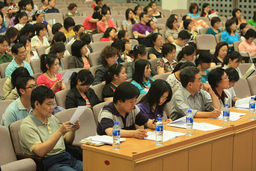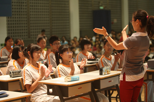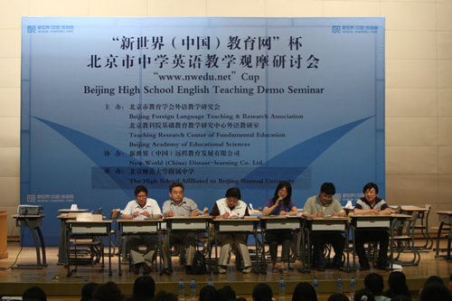 由北京市教育学会外语教学研究会、北京教科院基础教育研究中心外语教研室主办的“新世界(中国)教育网”杯北京市中学英语教学观摩研讨会于6月16、18两天在我校礼堂成功举办。研讨会邀请了北师大、首师大和北京教科院的专家作为评委,包括我校外语组全体教师在内的北京市各学校英语教师共500余人观摩了研讨会。