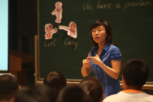 参加6月18日举行的初中组比赛的有北京三帆中学的孟欣老师,北京八一中学的史晓昌老师,以及我校外语组何煜老师。三位老师上课所用均为一段试听材料,在比赛中展现了不同的教学风格。孟欣老师授课的亮点展现在课前预教词汇;史晓昌老师的课拉近了和学生的距离,充分运用了肢体语言和说话中的语调;何煜老师的课流畅自然,环环相扣,通过不同层次地学习词汇,让学生最终能有效的运用上课所学知识。