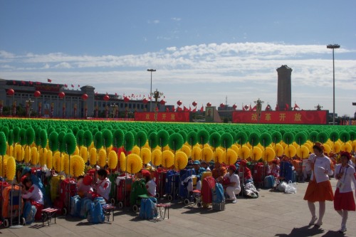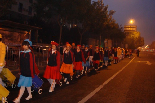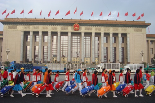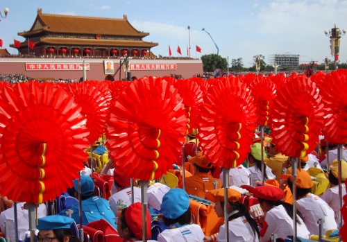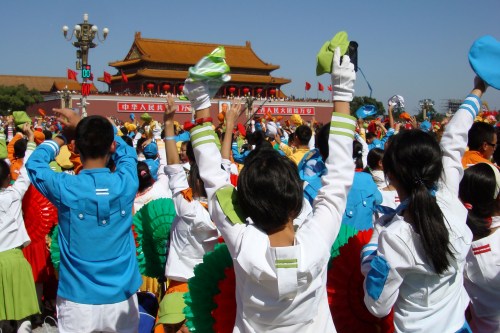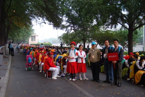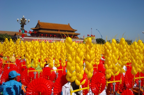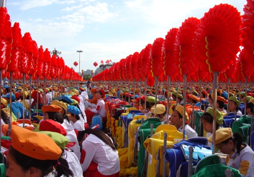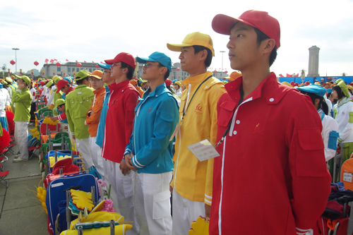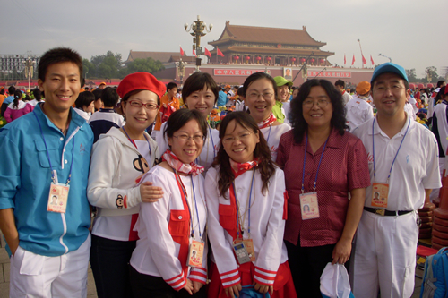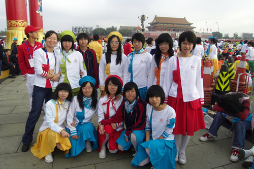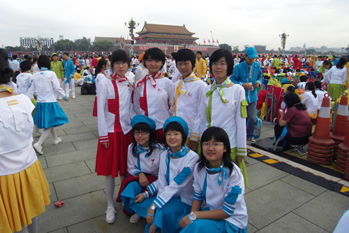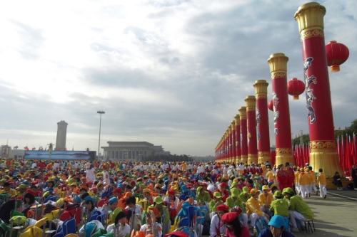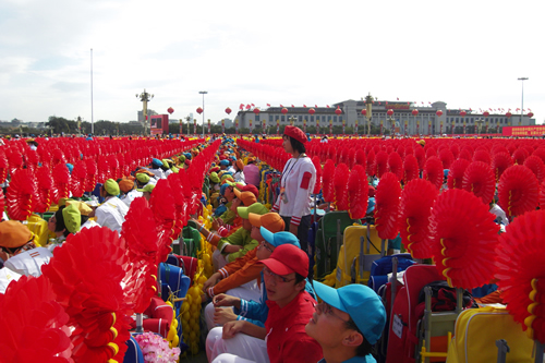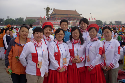 2009年10月1日上午,无关键词国庆庆典中心区背景表演大队共计师生751人,在刘沪校长、梁原草副校长、许建勇副书记的带领下来到天安门广场参加新世纪首次国庆盛大阅兵仪式。我校与全市270所中小学,8万多名学生共同承担背景方阵表演。组字包括“中华人民共和国万岁”“中国共产党万岁”“人民万岁”“社会主义好”等;图案包括金黄色麦田、五星红旗、盛开的牡丹、长城、和平鸽等;并协助完成巨幅国画《江山如此多娇》的展示。同学们近乎完美的表现,获得了国庆庆典指挥部的高度赞扬。