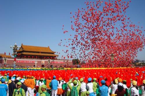 当历史的脚步穿越昔日的故宫金殿,中华民族5000年的记忆在天安门广场激荡;当祝福的礼炮响彻九天,震动960万平方公里的土地,祖国母亲迎来了她60周岁庆典的盛事华章。