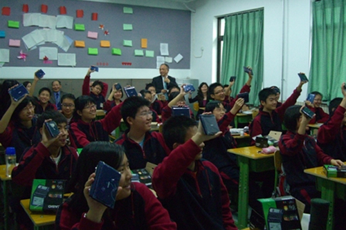 10月16日上午,中国教育学会外语教学专业委员会的张国强秘书长,卡西欧(上海)贸易公司副总经理吉田修作先生来到我校高一8班,出席了“十一五”重点课题“关于中国学生与优秀教师词典使用策略与模式研究”的实验班挂牌仪式。挂牌仪式开始前,张国强秘书长介绍了课题的基本情况,并对同学们的语言学习和工具书的使用提出了建议和希望。随后,吉田修作先生介绍了卡西欧公司在词典研发方面所做的努力和成果,并重点介绍了供参与课题的老师同学使用的最新款的卡西欧电子词典的特点。在实验班挂牌仪式结束后,卡西欧公司的工作人员为高一8班同学发放了实验用的电子词典,并详细介绍了词典的使用。参加挂牌仪式的还有我校外语组教研组长王京华老师,教学教研处主任冯健老师和英语组的郑真老师。