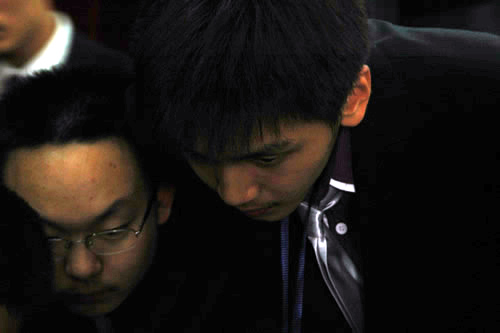 张鹏同学与代表交换意见