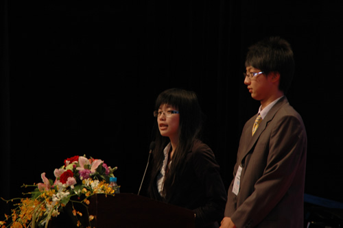 我校联合国大会GA(中文委员会)主席团樊思伊和张晨阳主持本委员会颁奖