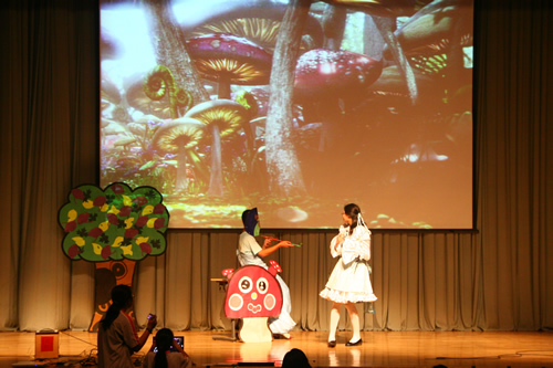 当天下午,活动的气氛活跃到了极点。竞赛代表队的同学们博学多识,思维敏捷,积极踊跃地回答问题;歌唱表演精彩纷呈,各具特色,展现了各班别样的风采;电影配音生动有趣,同学们在现场把不同角色演绎得惟妙惟肖;绕口令比拼紧张激烈,台上同学的惊人速度让每个观众都叹服不已。爱丽丝漫游仙境的短剧表演,更是为我们带来了一场视觉盛宴。流利的背诵,精彩的表演,华丽的背景,新颖的服装和道具,无一不是演员们辛勤付出的汗水和心血的结晶。最后,活动在四位英语老师的歌声中圆满落幕。