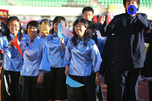9月28日我校在先农坛体育场举行了2010年秋季田径秋季运动会。刘沪校长等校领导出席了开幕式。