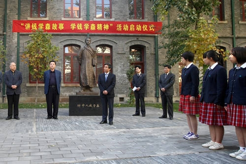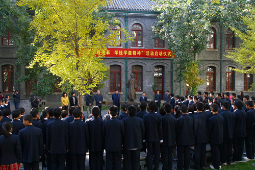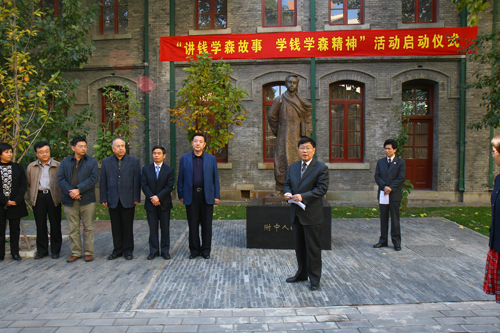 启动仪式上,钱学森先生之子钱永刚先生、女儿钱永真女士向学校赠送了中央电视台六集传记电视纪录片同名书《钱学森》。学生代表高二10班王宁同学发言,表示要以钱学森学长为榜样,努力成才,报效祖国。