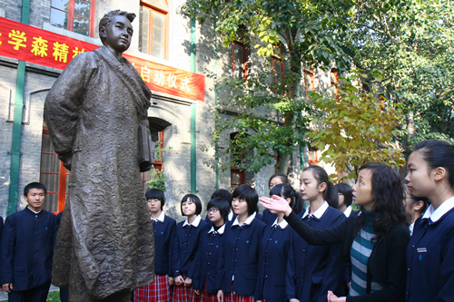 “讲钱学森故事,学钱学森精神”是学校向钱老学习的系列活动之一。刘沪校长在致辞中表示,为了更好地向钱学森先生学习,发扬钱学森精神,学校决定结合青少年特点,开展“讲钱学森故事,学钱学森精神”活动。他说,师大附中是钱老的中学母校,要率先向钱学森学习,学校才无愧于钱老的母校,我们才无愧于钱老的校友。学校将以班会、演讲会、板报、橱窗展、国旗下讲话、参观钱学森纪念馆、观看大型文献纪录片《钱学森》等形式,让学生探寻钱学森的成长道路和人生经历,了解一位杰出科学家和伟大爱国者的言行事迹和精神世界。通过同学们多种方式的实践参与,从中受到教育感染,自己得出结论,应当向钱学森校友学习哪些精神。