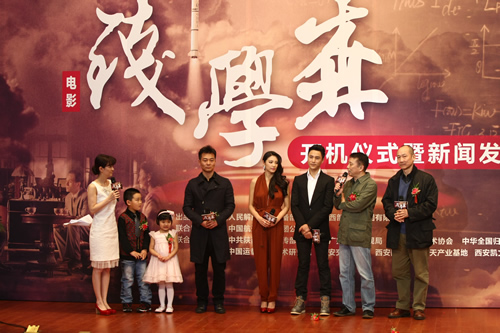 开机仪式上,各方面人士纷纷表达了对我国杰出科学家钱学森院士的景仰,并祝愿电影拍摄顺利。我校学生代表上台向杨利伟将军、钱永刚教授和演出剧组人员献花。杨利伟将军、钱永刚教授还与同学们亲切交谈,对如何继承钱老精神提出了建议,并表达了对同学们的殷切期望。