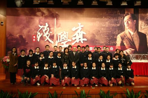 3月18日下午,人物传记大片《钱学森》的开机仪式在中国科技会堂举行。主演陈坤、张雨绮,监制黄建新、导演张建亚等主创集体出席亮相,航天英雄杨利伟少将、钱学森之子钱永刚教授作为特邀嘉宾出席,作为钱老的中学母校, 我校初三年级钱学森预备班的全体同学出席了开机仪式,刘沪校长和老师们前往祝贺。