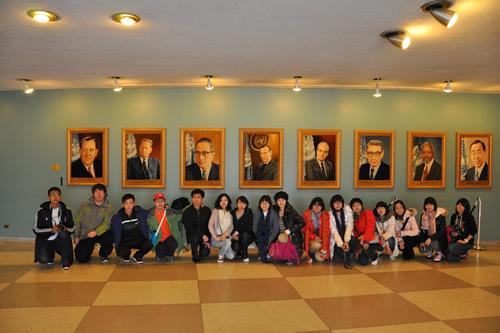 参观联合国总部,并在历届秘书长挂像前合影