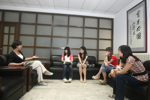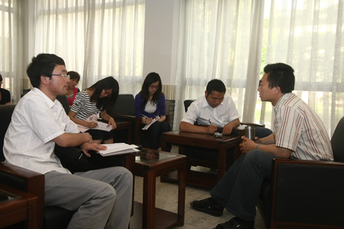 北京师范大学语文、数学、外语、物理、化学、生物、历史、地理、政治、教育、心理等所有免费师范生专业的九十余名首届毕业生,带着对教育生涯的思考和憧憬,于2011年5月25日下午来我校参观交流。