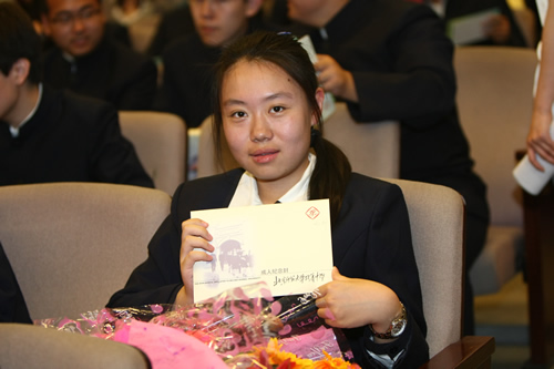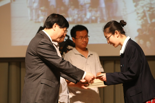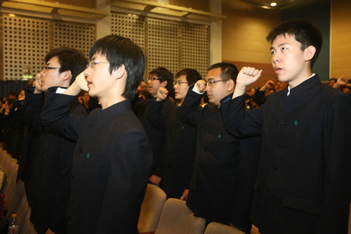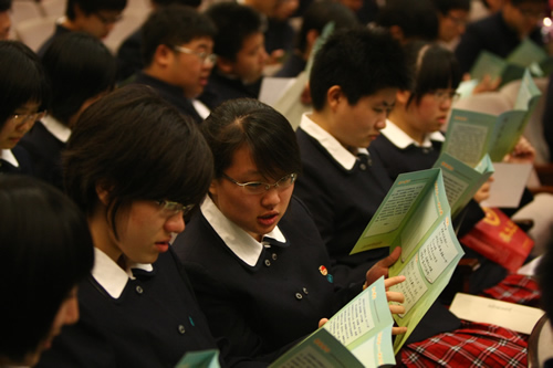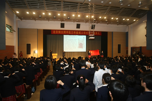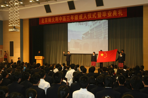上午九时,2011届高三年级成人仪式暨毕业典礼在百年礼堂里隆重举行。