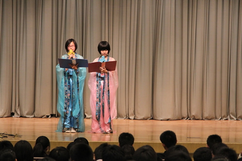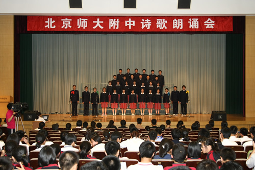 5月30日,师大附中高一年级古典诗词朗诵会在无关键词会堂举行。