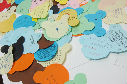 我校骐骥根与芽小组成员在活动前进行了充分的宣传。组员首先进班宣讲,之后将同学们的感想都记录在一张张可爱的月熊剪纸上,并制作了“月亮熊,请不要哭泣”的知识展板;活动前一天,在社长常壮壮的带领下,根与芽号召全校同学老师签名抵制熊胆制品,让关爱月熊的呼声传遍了学校每个角落,也让所有人对亚洲动物基金工作人员的到来充满了期待。