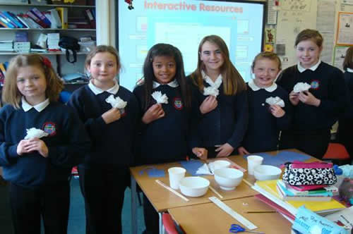在hangleton Junior School介绍清明节,教学生制作祭奠先人的小纸花