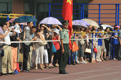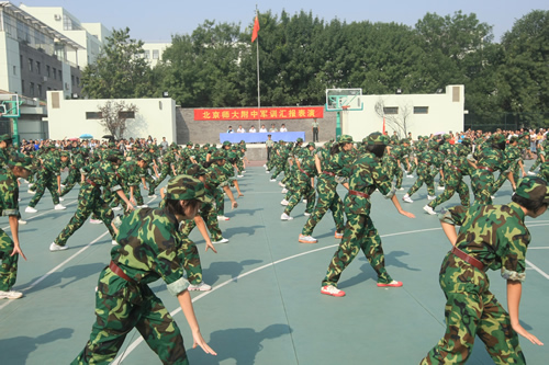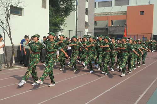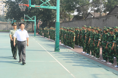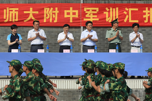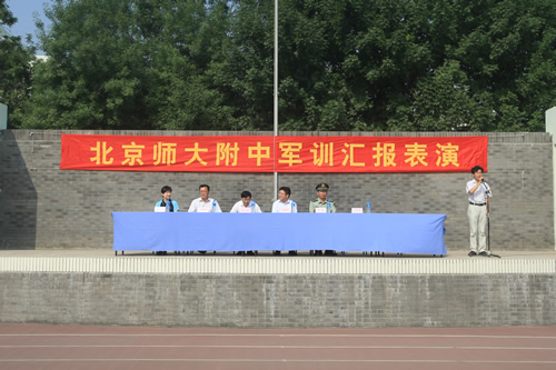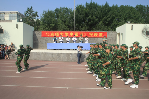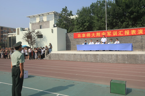 8月20日上午,无关键词2011级高一新生军训汇报表演在学校体育场隆重举行。西城区教委赵蓬欣副主任应邀出席并检阅了军训队伍。汇报表演由梁原草副校长主持,石家庄机械化步兵学院七大队倪好副大队长、无关键词刘沪校长、校党总支许建勇副书记、校工会主席全力老师等领导出席了汇报表演。
