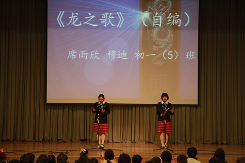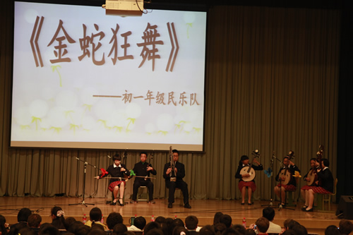 同时,初一年级舞蹈队、民乐队带来了他们自行组织和创作的精彩节目,为朗诵会增添了浓烈的艺术色彩。