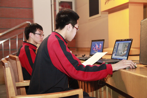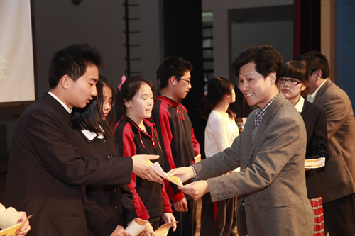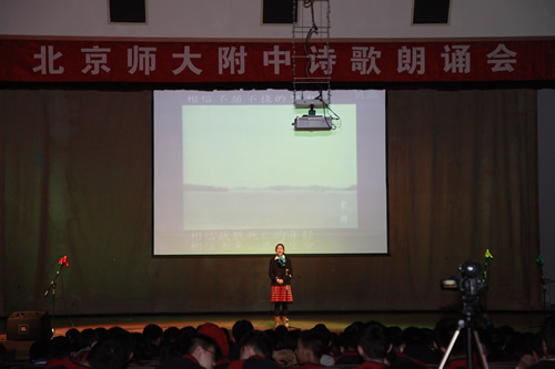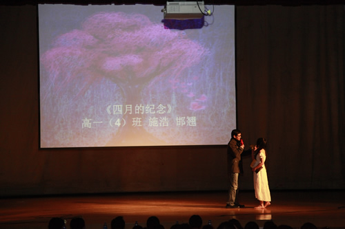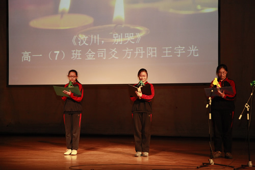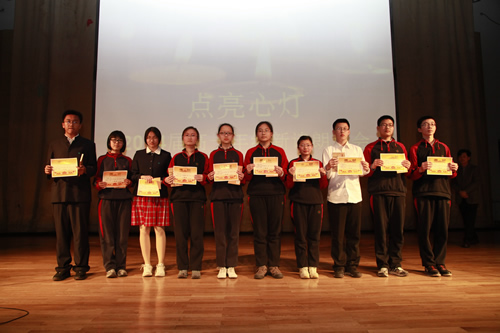 2012年3月30日星期五,高一年级全体学生在礼堂举办了“点亮心灯”主题新诗朗诵会。朗诵会根据学生选材分为三个主题:“我爱你中国”、“心灵的吟唱”、“我思故我在”。