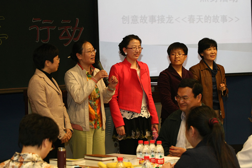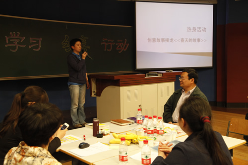活动由张鹏老师主持。首先是沈湘秦老师给大家带来轻松有趣的热身活动,接着是教师汇报环节。办公室张帅主任与大家分享了《迎头赶上,还是领跑全球――全球化时代的美国教育》一书的阅读心得。她指出,我国教育应该开阔学生的国际视野,培养人文素养,提升创造力,把孩子培养成全面发展的全球化人才。教学教研处冯健主任汇报的是他对美国高中教育的印象和看法。他认为,美国之所以能在教育上领跑世界,给学生充分的选择权是重要原因之一。最后,历史组李静老师结合大量的教学案例,提出了学生文科学习中存在的问题,进而从“人文素养与创新”角度寻求变革之道,介绍了“西安延安综合文化学习实施方案”。