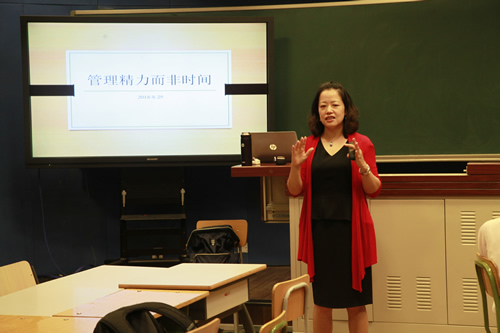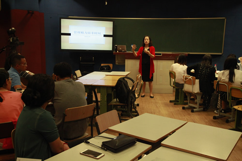 2017年8月29日,在新的学年即将来临之际,刚刚加入附中大家庭的新教师和部分分校教师的三十多位教师参加了为期一天的暑期教师培训活动。本次培训内容丰富,包含四个板块:一是由资深的培训行业专家周巍嬿老师做“管理精力而非时间”的分享,为老师们在繁忙地工作生活寻找平衡和幸福之道;二是由朱静静副主任带领大家熟悉校园,参观杏坛、三味书屋、钱学森纪念馆等,感悟附中的百年历史底蕴;三是学校各部门主任处室主任向大家进行职能介绍,让老师们熟悉附中的管理和运行模式和具体方法;四是资深礼仪培训师吕艳芝老师传授教师的礼仪之道。