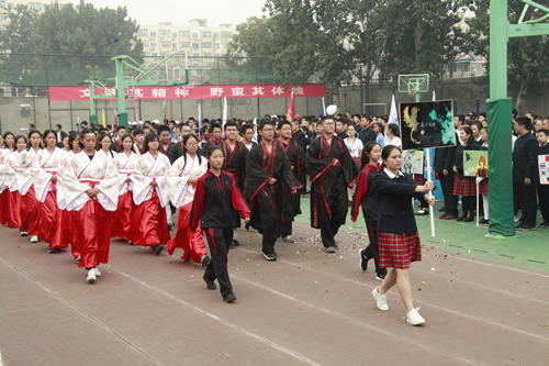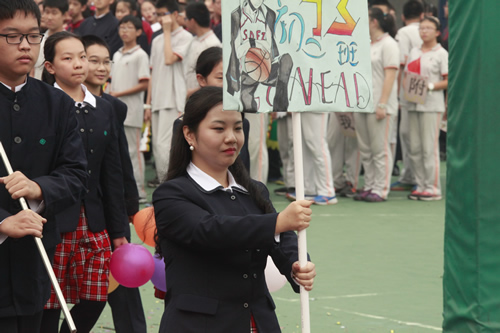 入场式上,各班同学围绕“中国梦 附中情”的主题,用新颖别致的入场创意,为大家呈现了一场精彩的视觉盛宴。精心设计的服饰、独特编排的队形、清晰响亮的口号,无不体现着他们每一个人对班级、对附中、对祖国的热爱之情。王莉萍校长发表了热情洋溢的讲话并宣布运动会开幕。