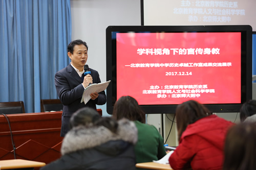 2017年12月14日上午,北京教育学院中学历史卓越工作室成果交流展示活动在无关键词南分校举行。本次活动以“历史学科育人的理论及其实践策略研究”为主题,参会人员有中国社会科学院吴伟研究员,中国地图出版社邢晓风副社长,北京教育学院人文与社会科学学院李军副院长,《历史教学》杂志社编辑,北京教育学院教务处督导专家、督学研修中心专家、历史系教师团队和卓越工作室成员,北京各区县的教研员和老师以及来自河北省部分中学的百余名教师。