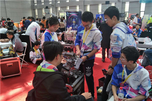 为了备战本次比赛,翟美丽老师和同学们利用每天放学后,甚至是周末时间进行训练,比赛临近甚至还练习到后半夜。在比赛期间,每晚只休息了一两个小时,将机器人调整到最佳状态,以迎接后续比赛。