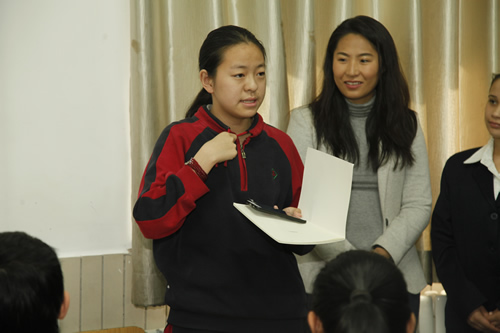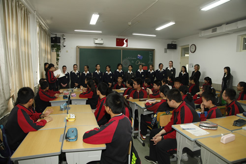 育文武女校的师生们首先来到初二12班,与该班学生一起上了一节马楠老师的英语课。精心的课堂设计和丰富的课堂活动为两校学生提供了良好的学习交流平台,同学们不仅学到了知识,而且加深了对彼此的了解。育文武女校师生还体验了具有中国特色的课外活动――课间操,参观了我校的文化设施和学科专业教室。随后,在接待室举行的欢迎仪式上,梁原草副校长代表学校对育文武女校师生的到来表示了热烈的欢迎,并介绍了学校的办学理念和国际化教育现状。育文武女校Arends主任对我校全人格教育理念表示赞同,并期待未来能够与我校开展更加深入的师生交流项目。最后,双方互赠学校吉祥物,并合影留念。