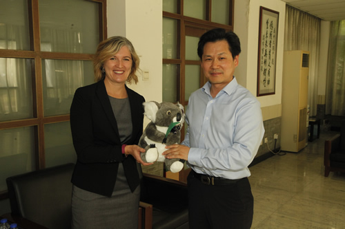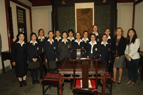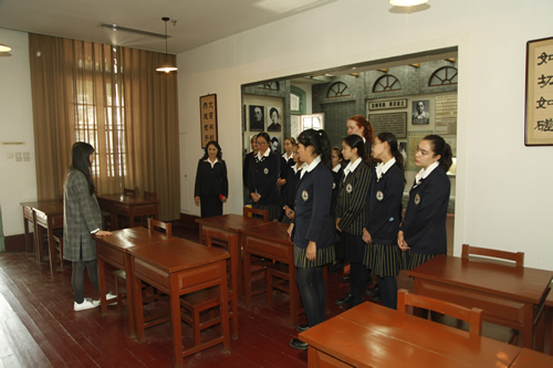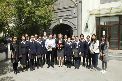 4月27日上午,澳大利亚育文武女校历史部主任 Catherine Arends女士、中文部白彦主任和郭媛媛老师带领该校12名学生来我校交流访问。