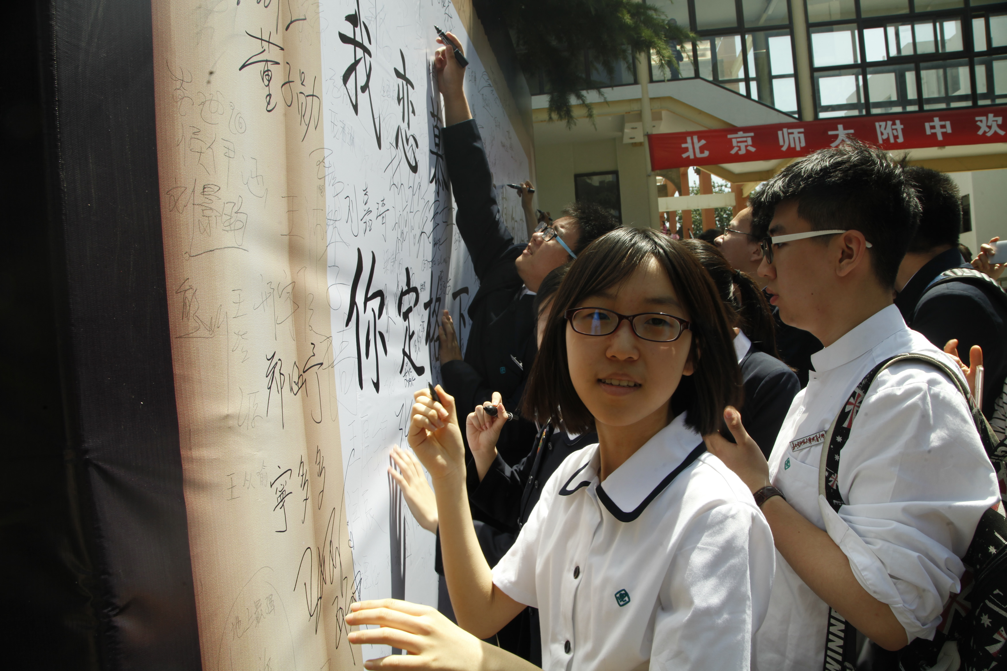梁原草副校长宣读了市区三好学生、优秀学生干部和优秀班集体的名单。所有人都由衷地为这三年来同学们取得的优异成绩感到骄傲与自豪。高三14班李兰迪同学被评为附中“艺术之星”,高三9班程尔聪同学荣获“全国最美中学生”称号。
