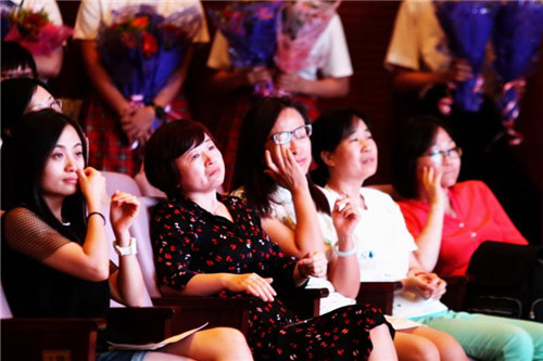 同学们用一组师生情景对话传递了对恩师的不舍与感恩。十二位班主任和年级组长依次登台,深情回顾三年来的点滴生活,表达了对同学们的深切祝福和期盼。同学们纷纷上台向老师们鞠躬致谢并献上鲜花,表达对恩师教诲的感激之情。