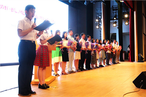 梁原草副校长宣读市区三好学生及优秀班集体名单,学校领导为表现优异的个人和集体颁奖。