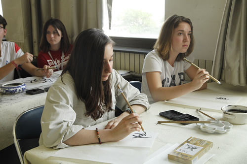 学习期间,法国学生在国际部老师的指导下,分别围绕初识、就餐与点菜,购物等主题,进行了专项学习,还到什刹海进行了汉语实践活动。他们还上了国画、书法、剪纸等文化课。法国学生在亲手完成书画和剪纸作品的过程中,领会了中国传统文化的盎然情趣。