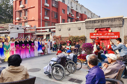 10月13日,在一年一度的重阳节来临之际,我校金帆舞蹈团30余名师生走进了西城区颐寿轩敬老院,开展了主题为“金帆情 夕阳红”的慰问演出活动,为敬老院的老人们送去节日的问候和温暖。
