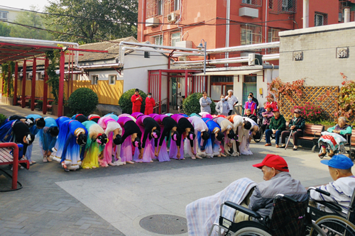 同学们献上了精心准备的专场演出,由各具特色的民族民间舞和优雅传统的古典舞组成。同学们真挚的情感、精彩的演出赢得了老人们和在场护工人员的阵阵掌声。秋色渐深,天气转凉,但今天的养老院格外温暖。