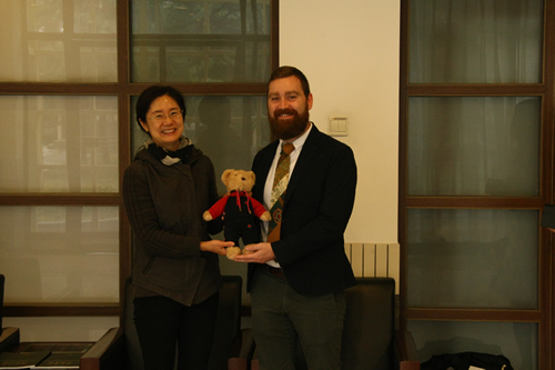欢迎仪式于10月16日在接待室举行,王莉萍校长出席并致欢迎辞。王校长向来宾们介绍了我校的悠久历史、办学理念和国际交流工作,特别是回顾了我校和圣玛丽学院师生七年来的交流历程。参加此次欢迎仪式的还有徐兰校长助理、白丽娜老师和交流中心的老师们。最后,两校领导互换礼物并合影留念。