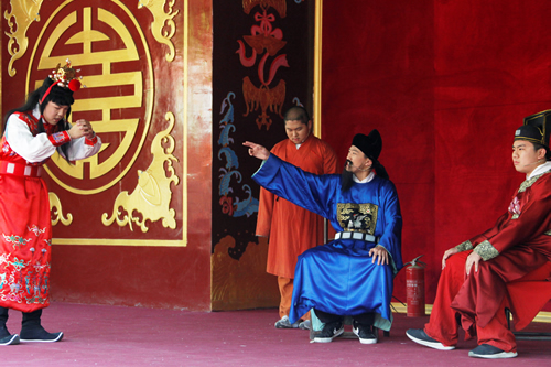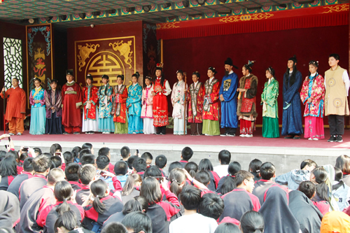 除了常规的游览,最令人期待的莫过于高一学子组成的《红楼梦》剧组在大观楼之上的戏剧表演了。演员们个个精神饱满,神采奕奕。历经一月有余的筹备和排练,他们齐心协力使《黛玉进贾府》和《宝玉挨打》两出戏剧完美收官。表演现场,观众们热情高涨,鼓掌叫好声连绵起伏,游览的其他游客也纷纷驻足观看,并给予这场表演充分的肯定和赞扬。
