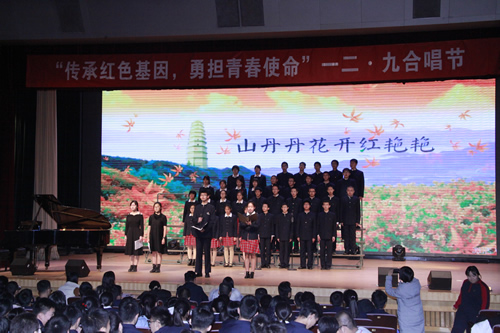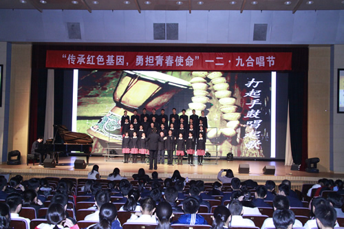 本次合唱节共有来自高一年级以班团支部为单位的12支参赛队伍。歌声中,同学们仿佛又回到了那个战火纷飞的峥嵘岁月。他们与各所高校的青年学生们一起在长街上游行,呼喊着救国的口号;他们与红军战士一起爬雪山过草地,登上落满白雪太行山顶看旭日东升;他们与文人学者们一起站在长江黄河边上,望着滚滚流水东去,抒发自己对祖国的热爱。他们似乎看见了黄土高原上怒放的鲜艳花朵,看见了北海上那只顺着碧波飘荡的小船,看见了苍茫天地下广袤无垠牛羊成群的原野,看见了深冬的松花江畔缀着道道冰凌的树林,看见了在众人歌声中腾空而起的无数白鸽,向着遥远的蓝天飞去。