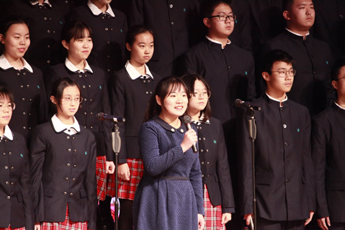 颁奖环节,梁校长的话引人深思。如果没有这个合唱节比赛,我们也许永远不会去主动了解那些抗战年代的歌曲,也永远无法理解那些歌曲中蕴藏的坚定与深情。随着时代的发展,外来歌曲越来越被现代的年轻人所接受。但是,在我们喜爱这些外来歌曲的同时,我们能否保持一颗对我国那些艰苦卓绝岁月中所诞生出来的歌曲的崇敬与热爱的心?这些歌曲记录了那段特殊的历史,承载了那些最为宝贵的中华民族的精神品质-----而这些品质正是我们新时代学生所要去了解学习的。我们歌颂历史英雄,传承中华精神的责任落在了我们肩上,只有这样,我们才能带领着中国走向更伟大的未来!