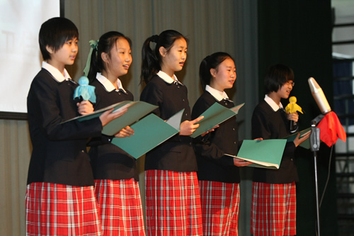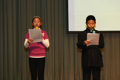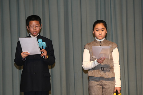 更加令人振奋的是,参赛节目表演完毕后,全体起立,齐颂《春江花月夜》,气势宏伟,余音不绝。这极大地调动了同学们对朗诵的兴趣和热情。
