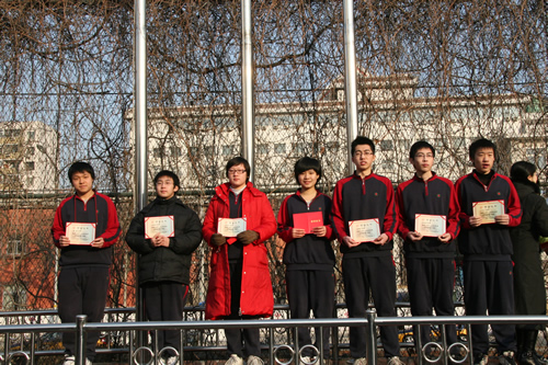 2009年1月4日,我校2007-2008学年“校友奖学金”颁奖仪式在新年第一次升旗仪式上举行。王莉萍副校长简要介绍了校友奖学金的由来、奖励范围及奖励办法,并宣读了获奖学生名单;刘沪校长等校领导为获得该学年一等奖学金的37名学生颁奖。在本次颁奖仪式中,学校特别为获得北京电视台“SK状元榜”2008年度总季军的张恒熠同学授予“附中博学之星”称号,并赠牌予以留念。