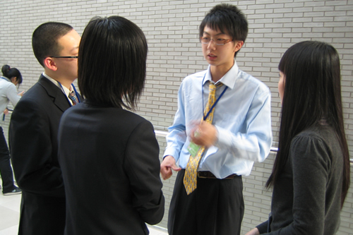 同学们会前精心准备,会上表现出色,获得多种奖项。王作辛(高二10)凭借在大使论坛中的出色表现一举夺得了最佳代表奖,续写我校在北大会议上的光荣(去年主席樊思伊在会议中也夺得了最佳代表奖),为学校争得了荣誉。其他代表也有上佳的发挥,郄艺,李东鹤(高二11)在亚太经合委员会中凭借着出色的角色扮演夺得了最佳立场文件以及最佳立场把握两个奖项。张晨阳(高二5)在联合国教科文组织会议中凭借出色的语言能力夺得了最佳阐述奖。张鹏(高一9)、郑可欣(高一6)在联合国开发计划署表现不俗,获得了最佳阐述奖。张琛(高二9),洪雨彬(高一10)在主新闻中心代表塔斯社,他们凭借着扎实的文字基础夺得了最佳报道奖。在地球村的活动中,我校的展台新颖别致,才艺展示令人耳目一新,在整个地球村活动中轰动全场,成为一道亮丽的风景。这些展出都是由杨凯薇(高二1)、宋卓玉(高二5)、范鑫(高一8)等同学精心设计制作的。