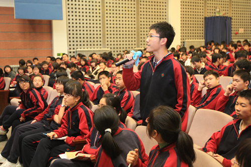 4月11日下午,中国科学院林群院士为我校高一、高二年级学生进行了题为“为什么要证明”和“不讲极限的微积分”的专题讲座。林群院士是我国泛函分析、计算数学研究领域内著名专家,并担任北京青少年科技创新学院顾问、北京市青少年科技俱乐部顾问。交流互动过程中,同学们纷纷向林群院士提出微积分方面和数学学习方面的问题,林老师一一作出解答,并对同学们提出的问题表示肯定。