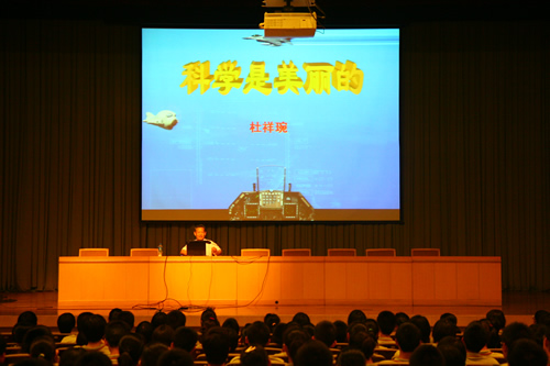9月16日下午,我校科技俱乐部邀请中国工程院副院长、中国工程院杜祥琬院士,为我校高一、高二年级全体学生进行了题为“科学是美丽的”科普讲座。身为应用物理与强激光技术专家的杜院士从核科学的起步谈到核技术的发展、核能对人类社会的影响,深入浅出的将核科学、激光技术的发展历程、学术前沿呈现给同学们,不仅为大家展示了科学世界的美丽,而且让大家更深地体会到科学精神和中国科学家的爱国情怀。同学们对讲座表现出浓厚的兴趣,提出很多问题。杜院士叮嘱同学们:文科生也要时刻关注理工科前沿的发展,理科生则不能放松人文方面的修养。