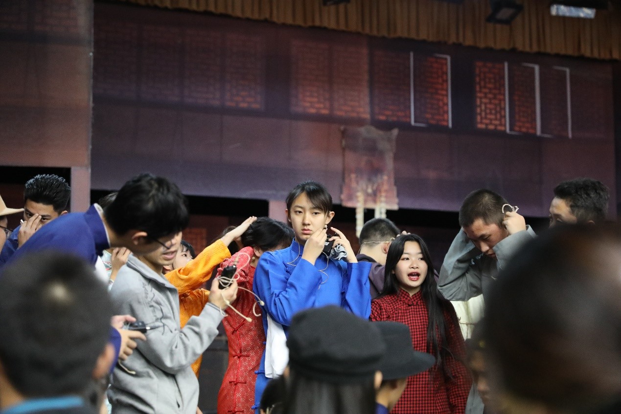 本次活动由北师大直属附校语文学科教育研究共同体开展,旨在将语文学科与戏剧艺术结合,让学生在提高对于经典名著的鉴赏与解读能力的同时感受语文之美、戏剧之美,也加强了北京师范大学三所附校间的合作与交流。我校承担《茶馆》第三幕的编排、演出工作,学生社团“是之剧社”的团员参与其中,张洋、慕冰欣老师作为总导演,高二年级王子滔、关锦然同学作为学生导演,初二、高一、高二年级同学踊跃参与其中,最终联手打造了青春版话剧《茶馆》。