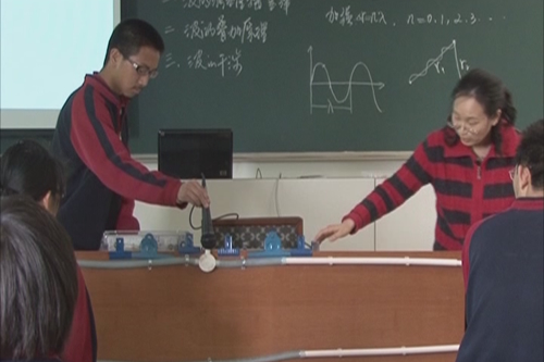 3月13日下午,在我校主办的市级物理教研活动中,物理教研组组长马桂君老师做了一节课题为《波的干涉》的研究课。共约40余位专家和教师参加了本次教研活动,其中包括物理学会专题组的专家周誉蔼、杨雄生、王天谡、魏义钧、刘彬生、梁静纯等老师,人教社课标教材编委张维善教授,人大附中、四中、实验中学等示范校部分教师,还有宣武区部分物理教师,等等。课后物理学会专题组的老师们进行了热烈的讨论,在评课环节对本节课做了充分的肯定。特别是其中两个实验,一个是体验声音的干涉,另一个是由学生分组来观察水波的干涉,专家一致评价这是一种创新,效果非常好。另外,大家认为马老师对“波的叠加和干涉”的理论分析层次清楚、全面且深入。参与此次活动的老师普遍感觉受到很大的启发,获益匪浅。