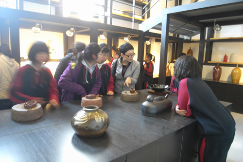张蓓老师在给学生介绍紫砂