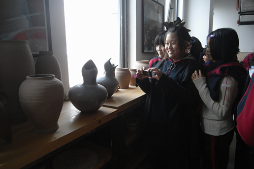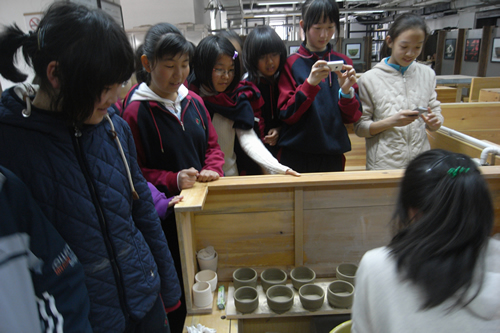 清华大学美术学院陶瓷系的副系主任章星教授亲自带领同学们参观陶瓷系的环境、设施,并且还为我校同学讲解陶瓷的烧成过程。陶瓷系的其他老师也为大家演示了设备的使用,陶瓷系的研究生大姐姐也给同学们做了精彩的“拉坯”表演。大家不仅更加直观的了解到陶瓷的制作工艺,而且在陶瓷系展厅内欣赏到了难得一见的精美艺术品,更感受到了我国悠久的陶瓷艺术文化,获益匪浅。