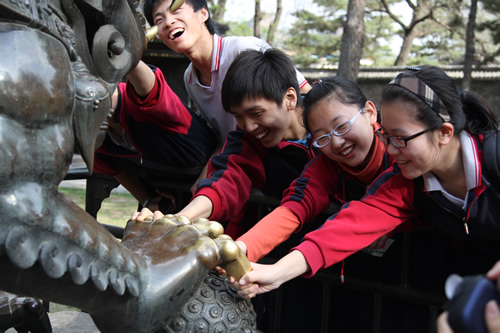 2011年5月13日清晨,伴随着温暖的初夏晨风,我校高二年级全体同学在学校工会主席全力老师、综合课程处李磊主任等校领导和年级组长贾瑞枫老师等的带领下,登上了去往承德的火车,开始了游学承德的旅程。