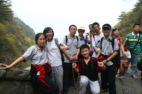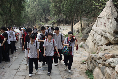 2011年5月4日至7日,我校高一年级全体同学在梁原草副校长和教导处况莉主任的带领下,前往山东省开展了为期三天的泰山-曲阜游学活动。同学们在曲阜参观了孔府、孔庙和孔林,实地考察了我国儒家文化的发源地,更加深刻地了解了孔子在中华文明中重要的文化意义。在第二天的登泰山活动中,同学们征服了陡峭险峻的“十八盘”,成功登顶泰山,尽享“一览众山小”的豪迈情怀。作为帝王封禅圣地的泰山,其深厚的文化底蕴令人震撼,沿途的摩崖石刻不仅让同学们欣赏到了精美的诗文和精湛的书法艺术,思想上更是受到多方面的启迪。登山过程中同学们表现出的顽强毅力和团结互助精神,更让人自豪和感动。在社会实践的整个过程中,同学们谦逊礼貌,爱护环境,行为得体,表现出附中学子良好的文明素养,得到随行导游和当地人的夸赞。此次游学之旅给同学留下了深刻印象,丰富了同学们的阅历,培养了同学们人文情怀。